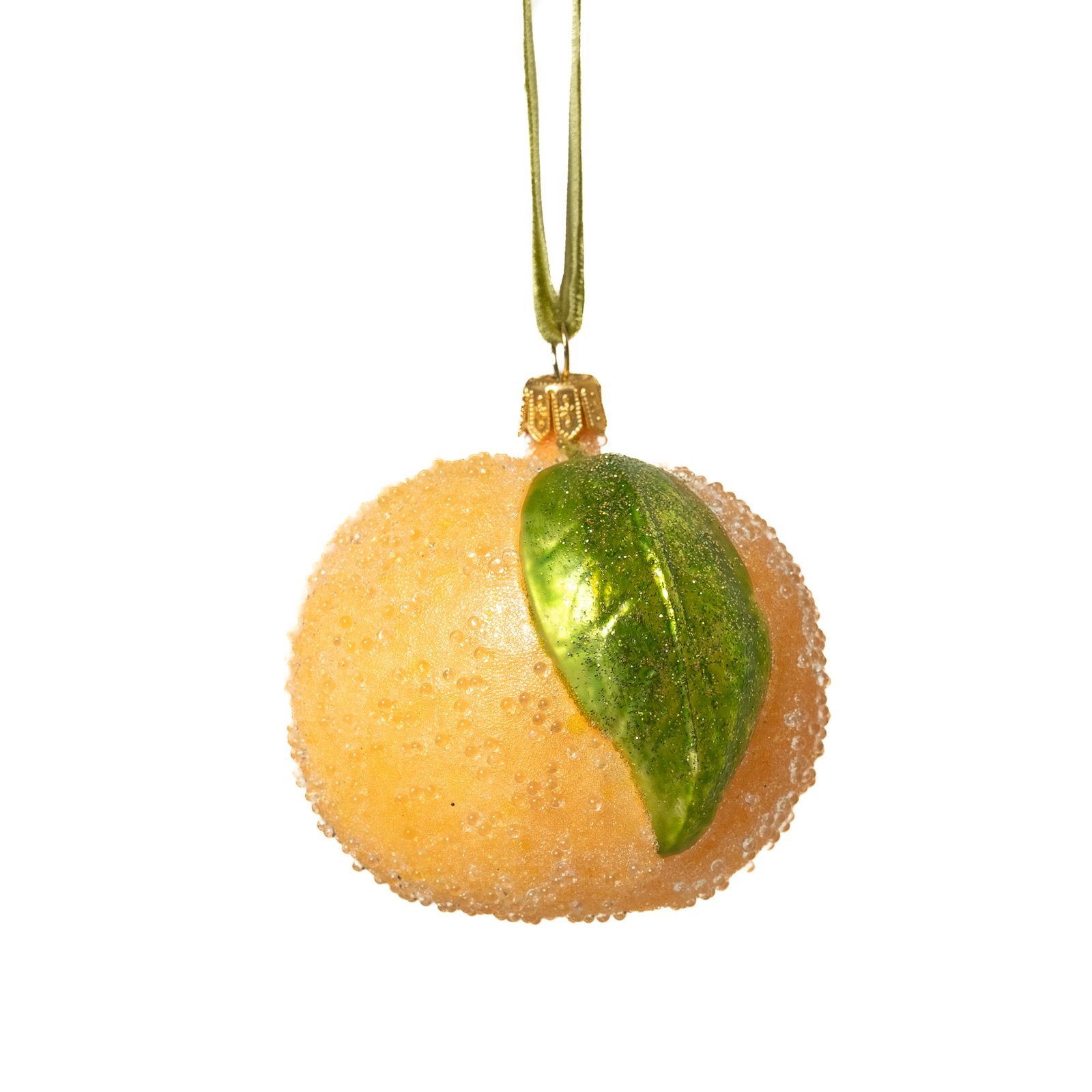 Blizgus citrinos žaisliukas, papuoštas lapeliais.