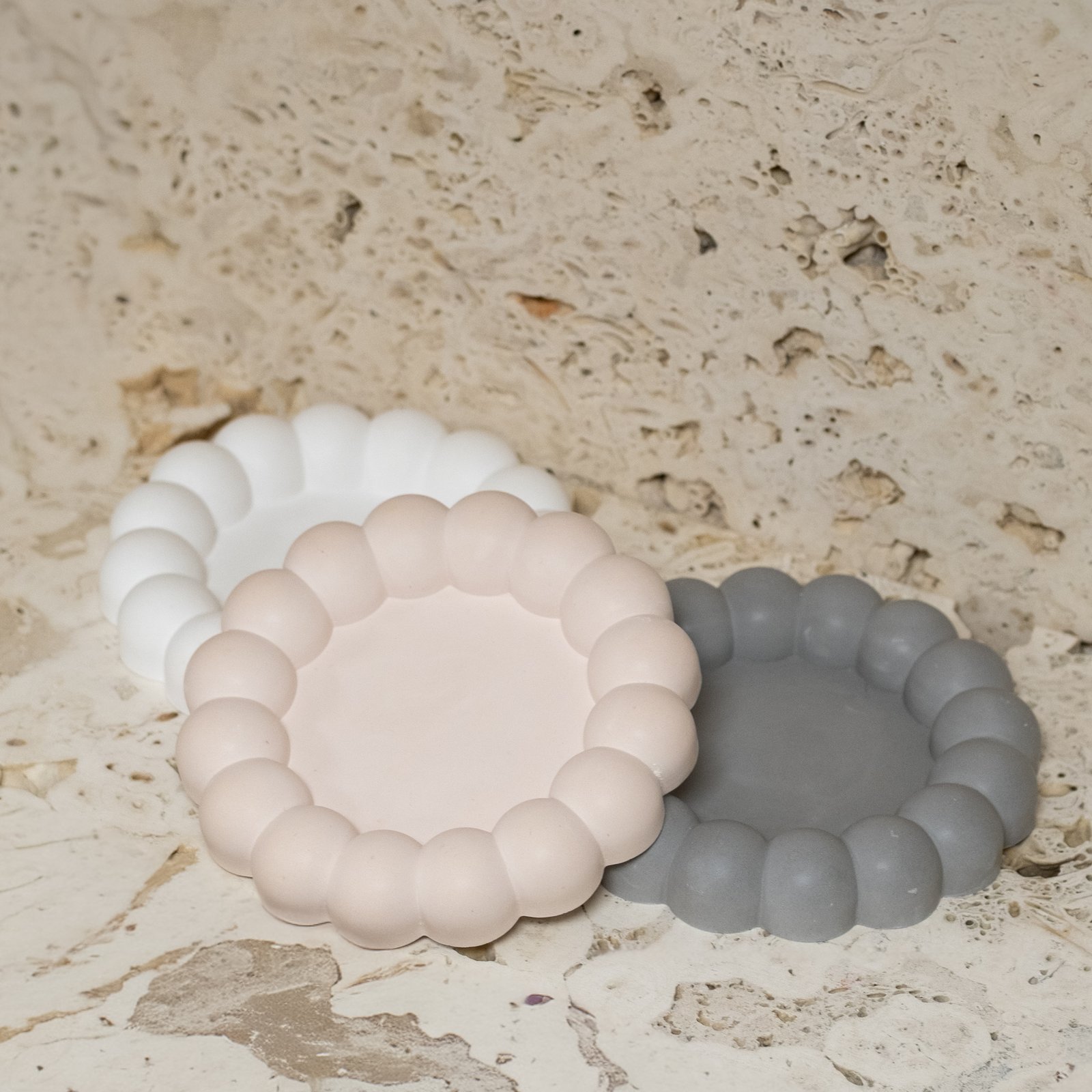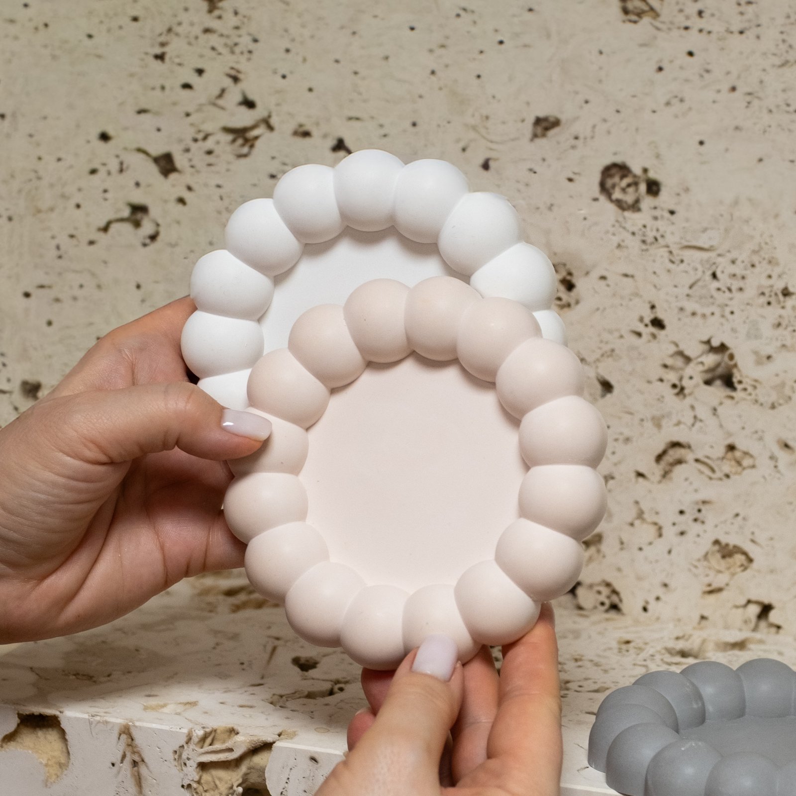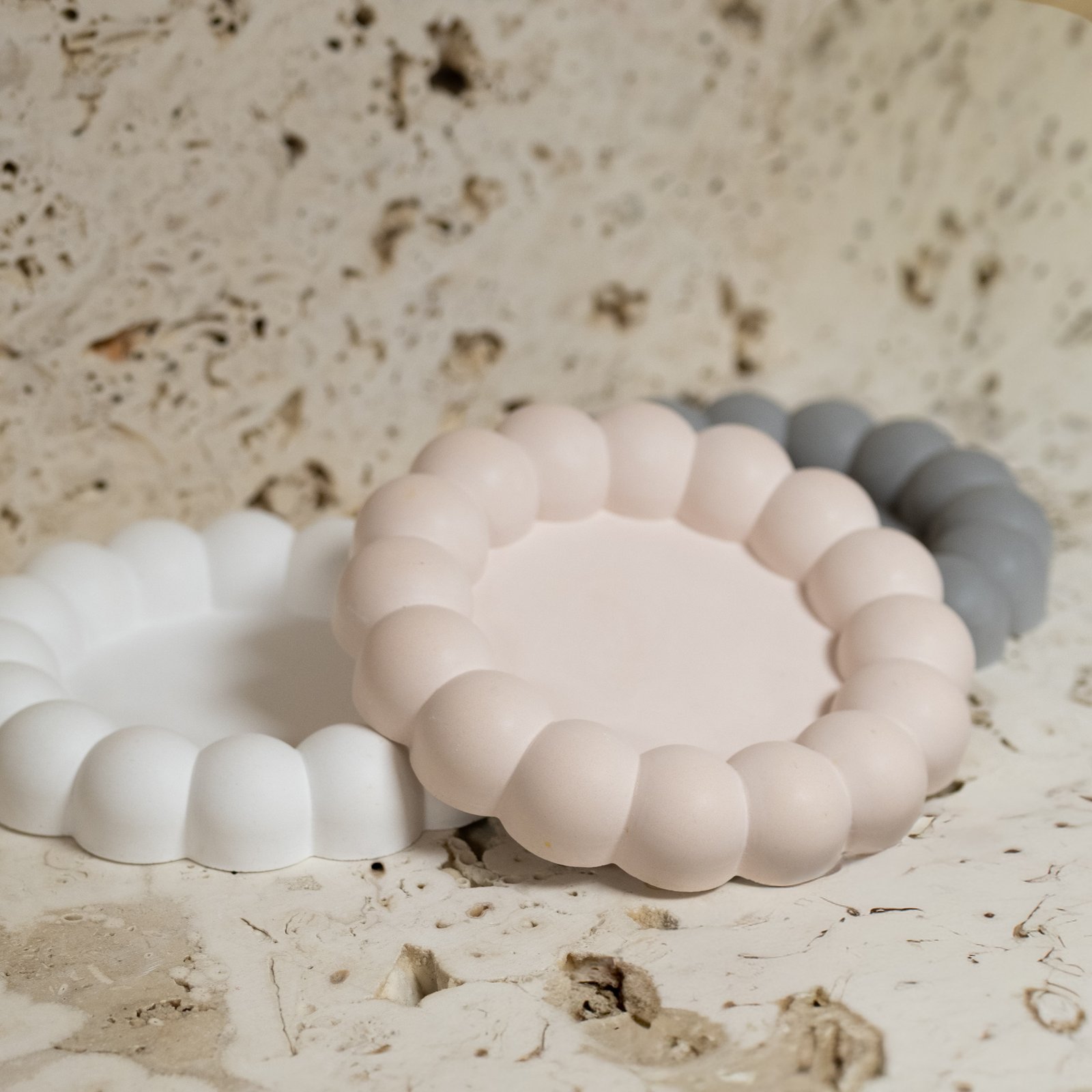 Minimalistinis padėkliuko dizainas suteikia elegancijos ir subtilaus išskirtinumo. Apvali forma su dekoratyviniu „burbuliukų“ krašteliu kuria švelnumo bei harmonijos pojūtį, todėl padėkliukas lengvai įsilieja į įvairius interjerus – nuo modernaus iki skandinaviško stiliaus.