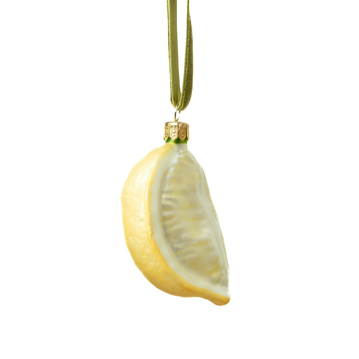 Blizgus citrinos žaisliukas, papuoštas lapeliais.