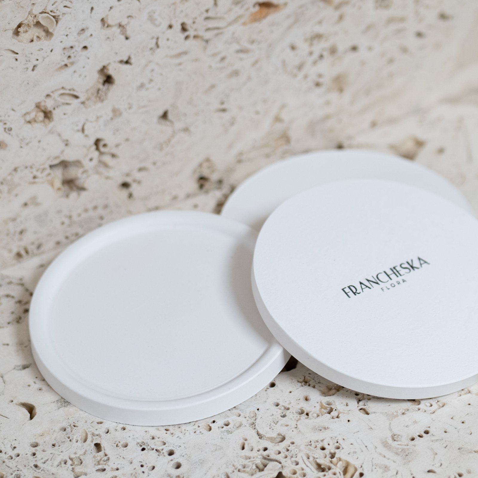 Subtilus, rankų darbo baltas padėkliukas iš gipso – puikus akcentas jūsų namų interjere. Tinka žvakėms, papuošalams ar smulkioms dekoracijoms.