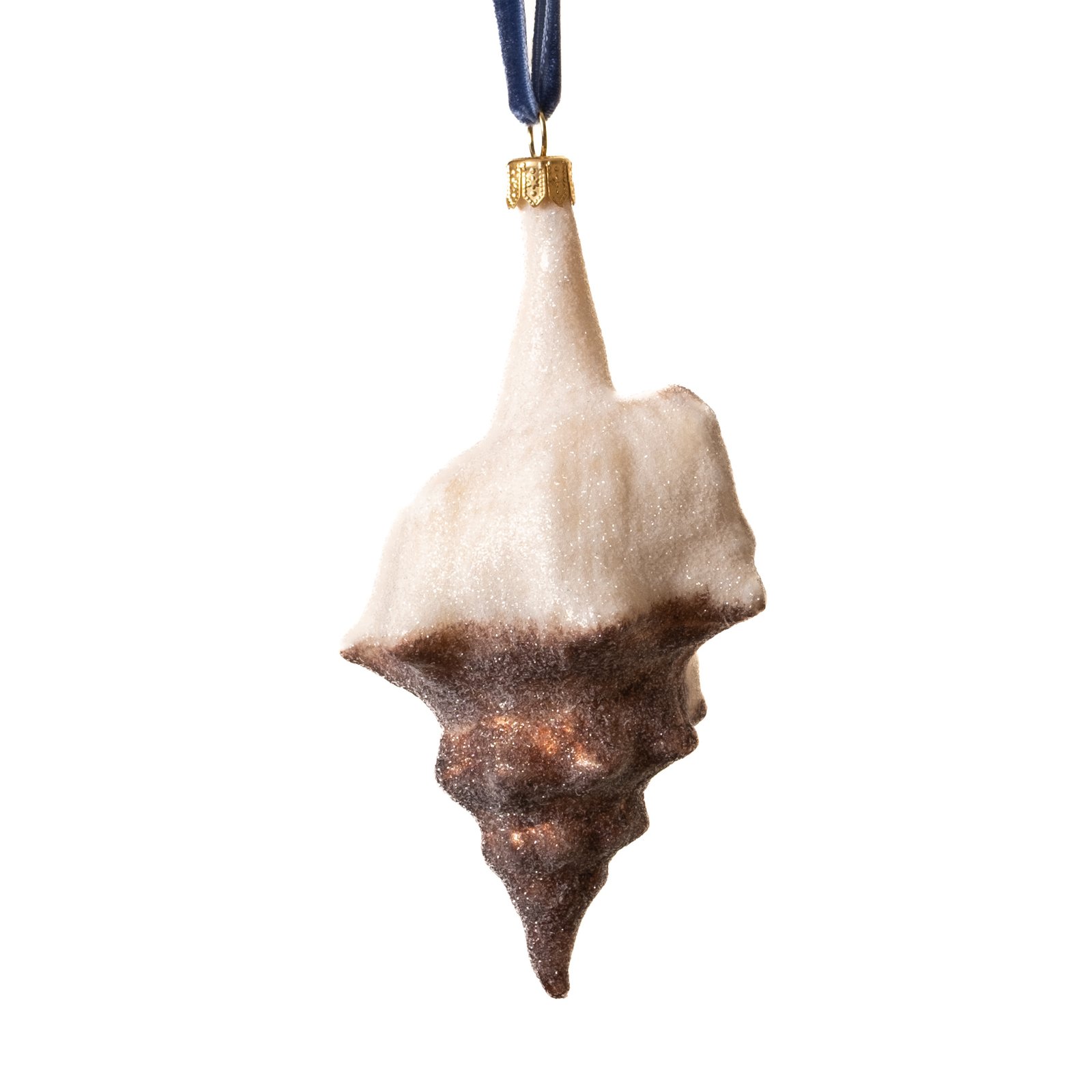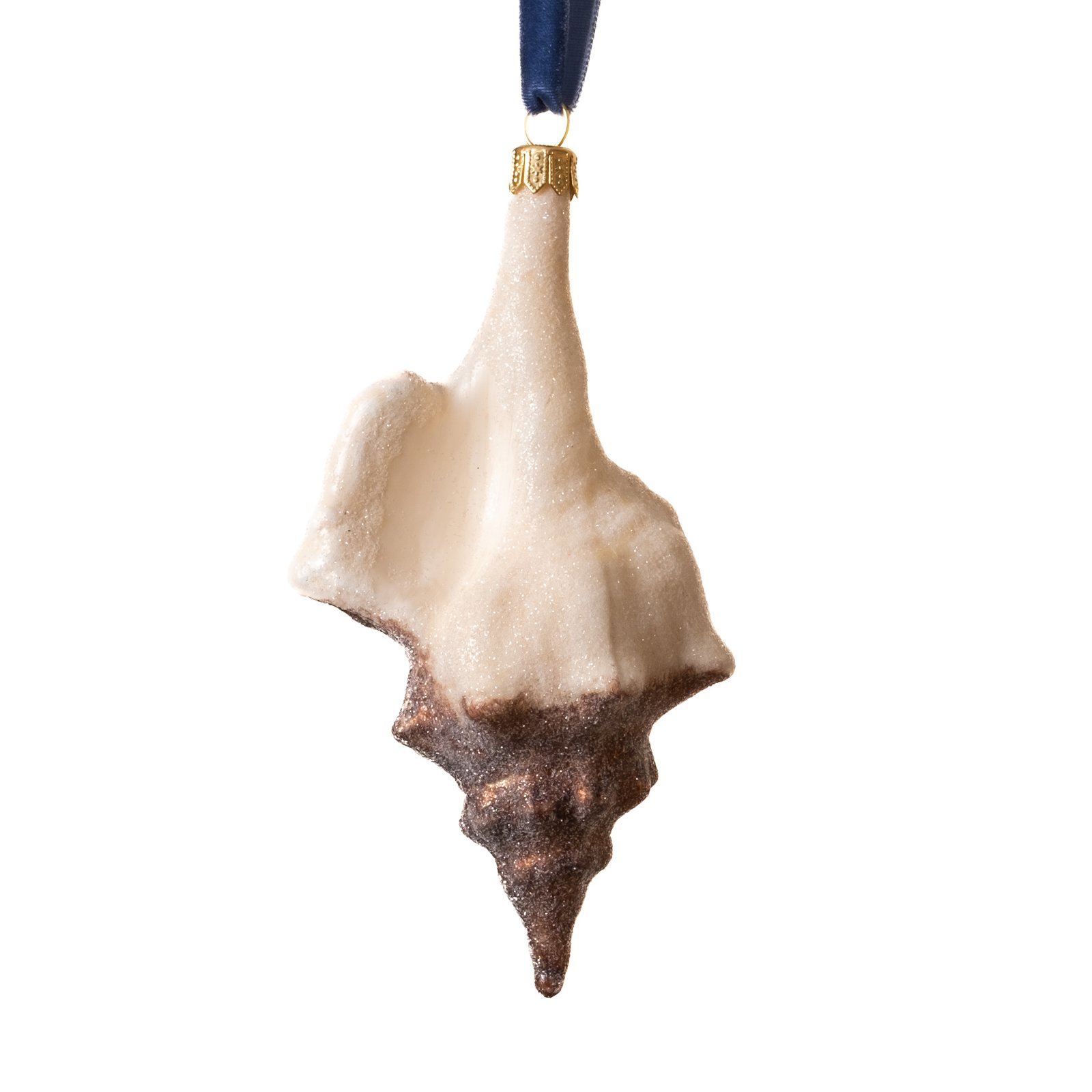 Švelniai perlamutrinis kriauklės formos žaisliukas.