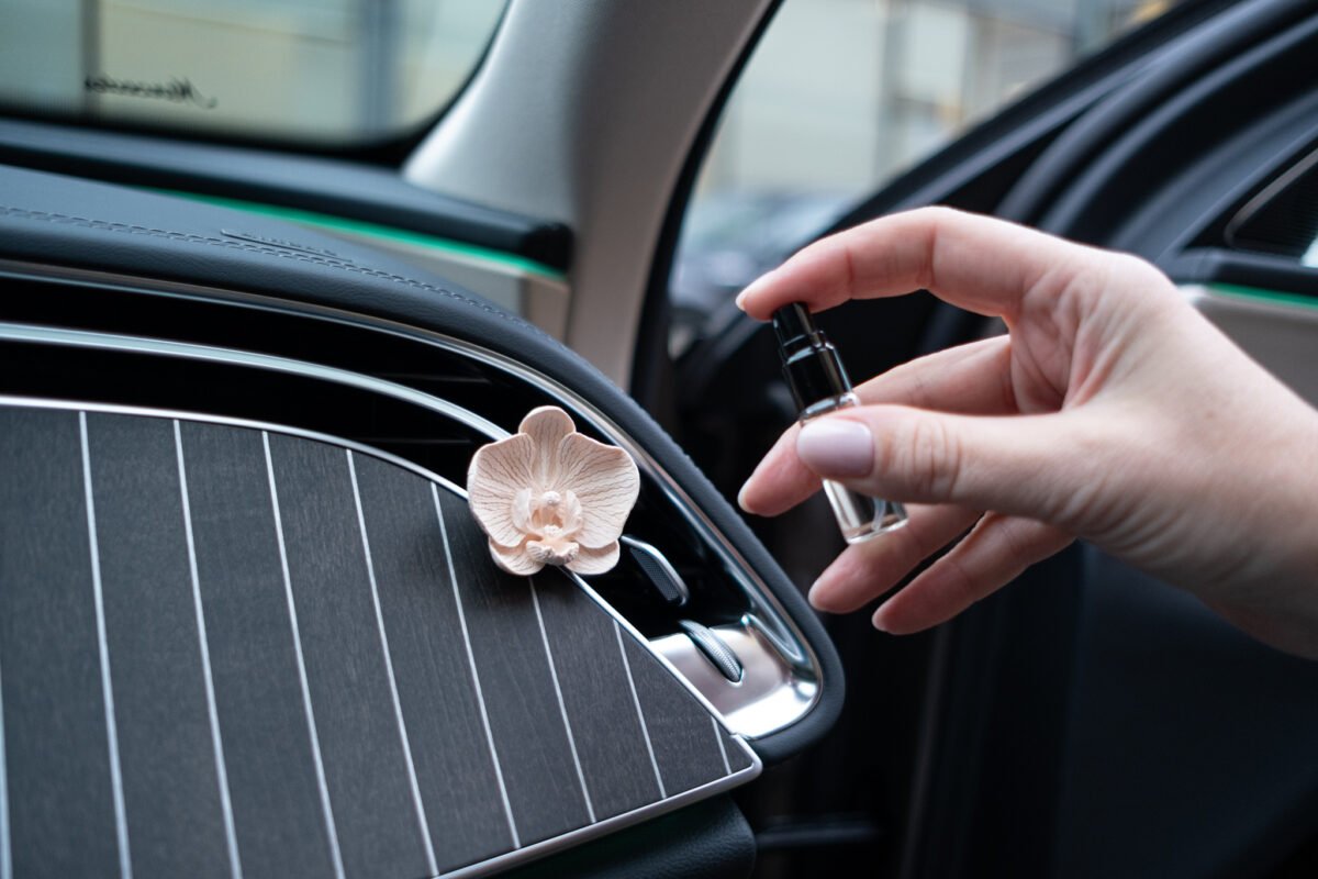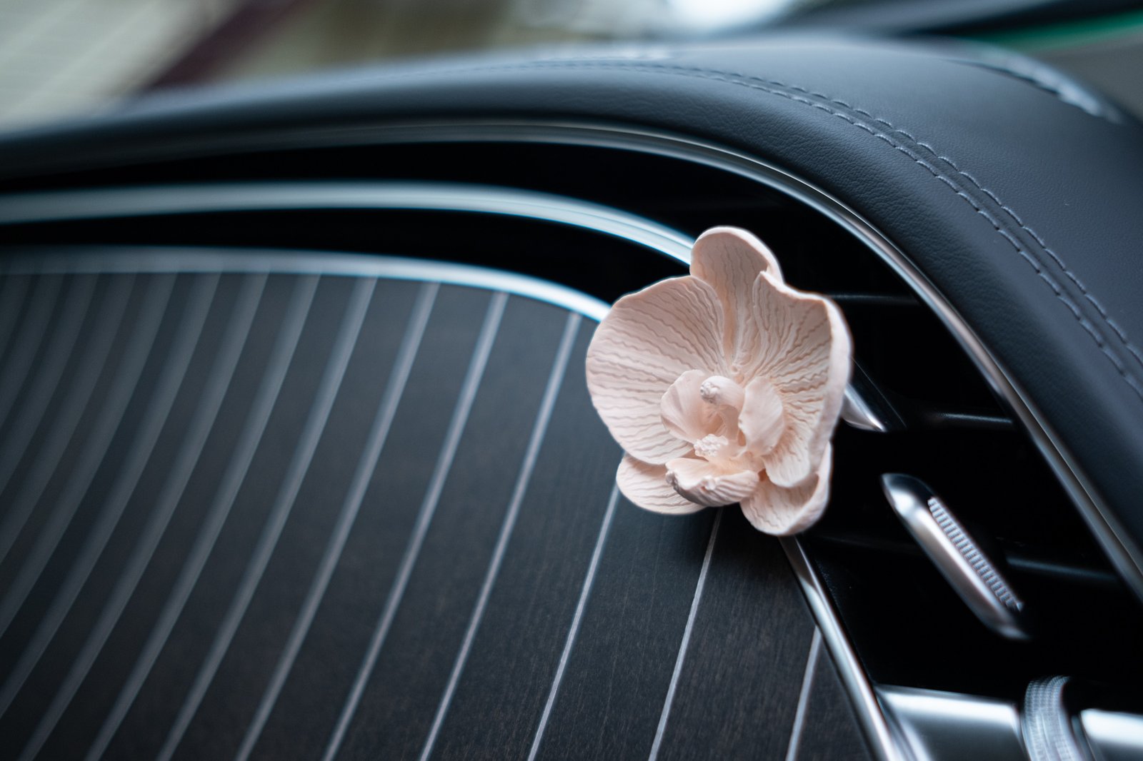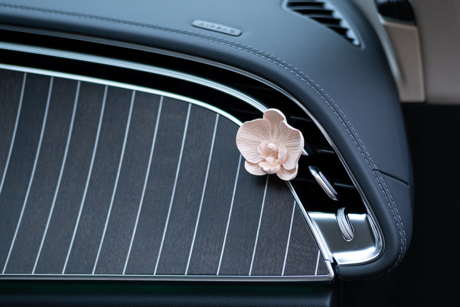 Kvepianti rankų darbo gipso dekoracija automobiliui „Orchidėja” ir koncentruoto kvapo papildymas. Ventiliatoriaus pagalba skleidžia aromatą po visą automobilio saloną, paversdama trumpas bei ilgas keliones dar malonesne patirtimi.