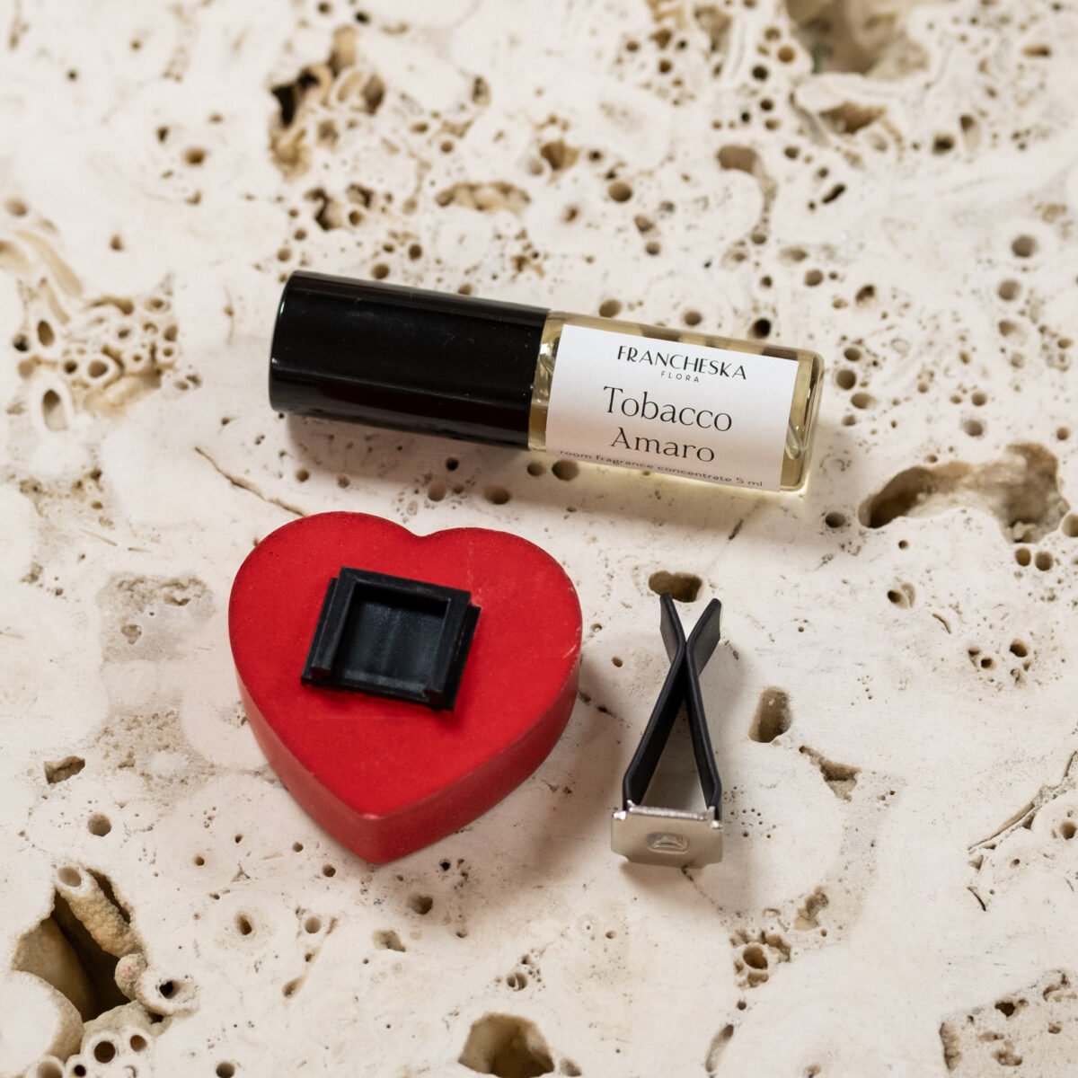 Kvepianti rankų darbo gipso dekoracija automobiliui „Paslaptis” ir koncentruoto kvapo papildymas. Maža kvepianti dovana, kuri kasdien primins apie meilę. Ventiliatoriaus pagalba skleidžia aromatą po visą automobilio saloną, paversdama trumpas bei ilgas keliones dar malonesne patirtimi..