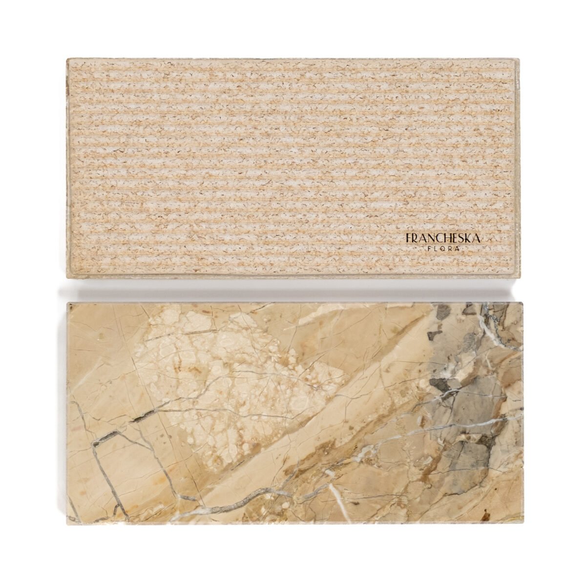 Akmens padėkliukai įneša į erdvę natūralų grožį – tai gamtos istorijos gabalėlis ir tikras natūralaus meno kūrinys. Prabangus šampano atspalvis su švelnia marmuro faktūra suteikia interjerui elegancijos ir išskirtinės estetikos.