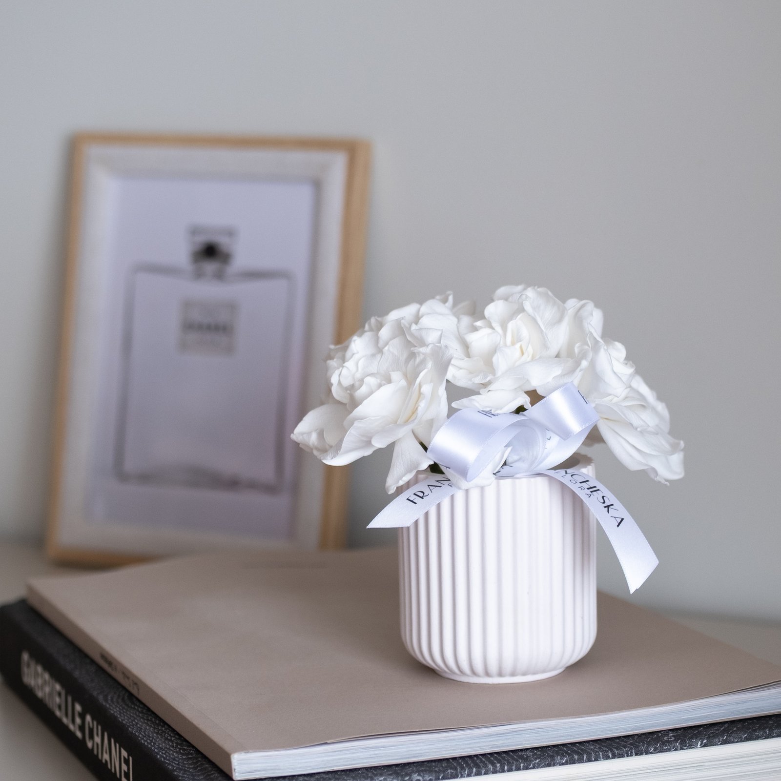 Ši nedidelė , tačiau išskirtinė kompozicija iš stabilizuotų gardenijų – tai ne tik interjero puošmena, bet ir subtilus difuzorius mažoms erdvėms, tokioms kaip vonios kambarys, miegamasis ar darbo kampelis.