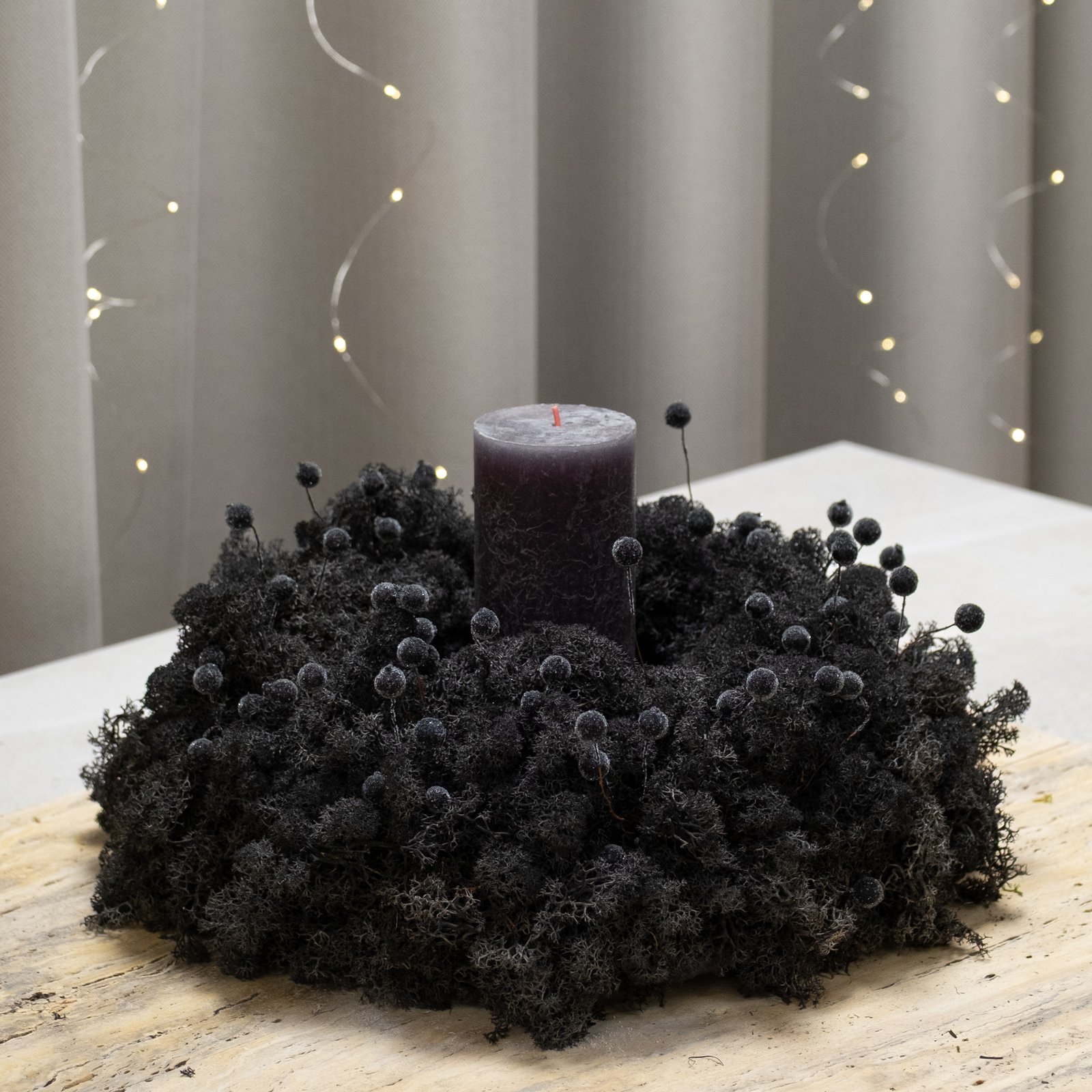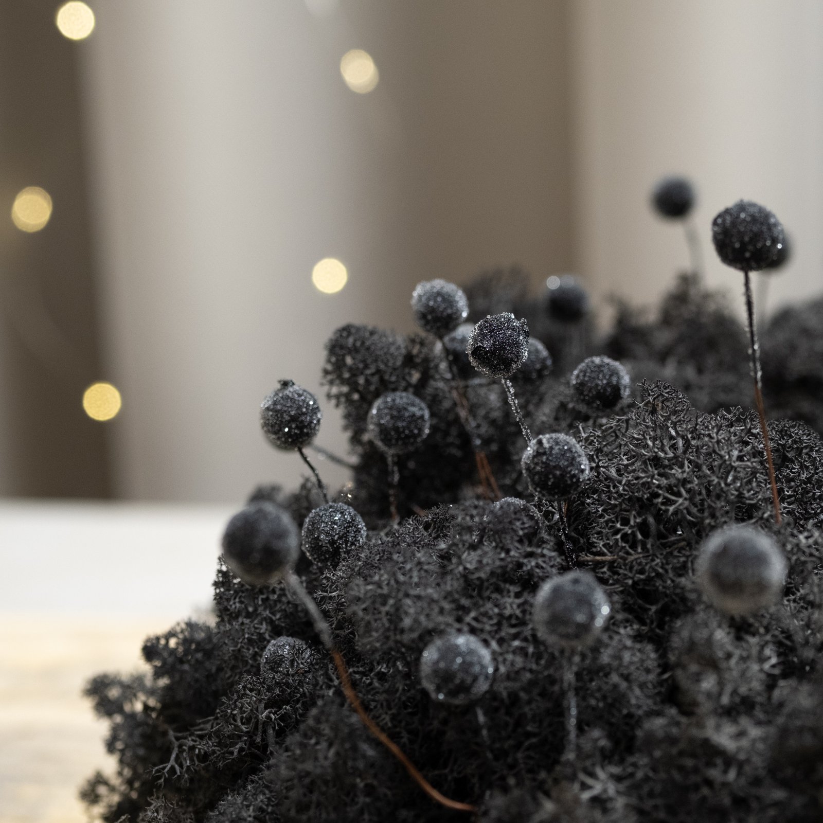 Juodas samanų vainikas – pasirinkimas tiems, kurie Kalėdas mato šiek tiek kitaip.