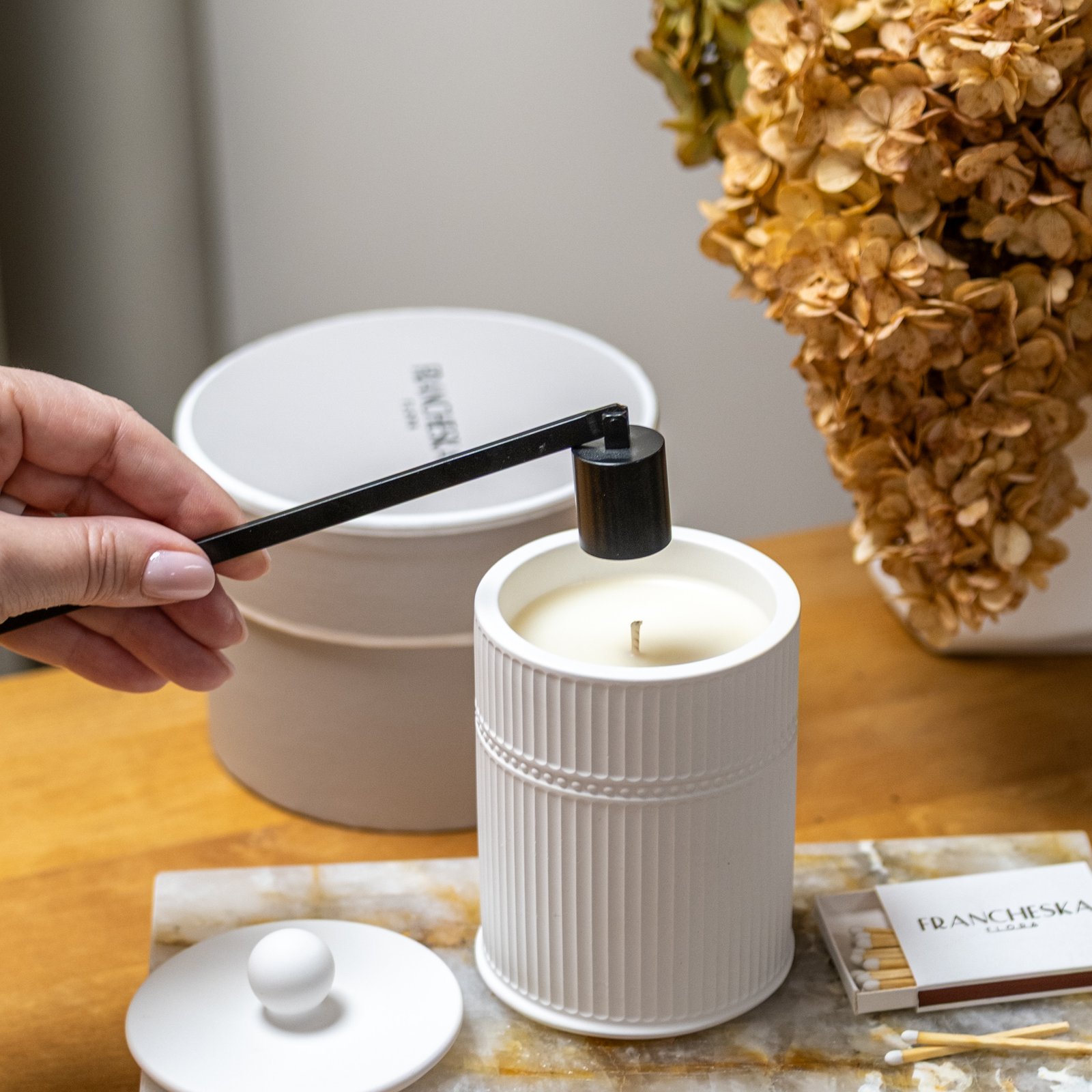 Stilingas žvakių gesiklis leidžia paprastai ir saugiai užgesinti žvakę, nepaliekant dūmų ir išsaugant jos aromatą.